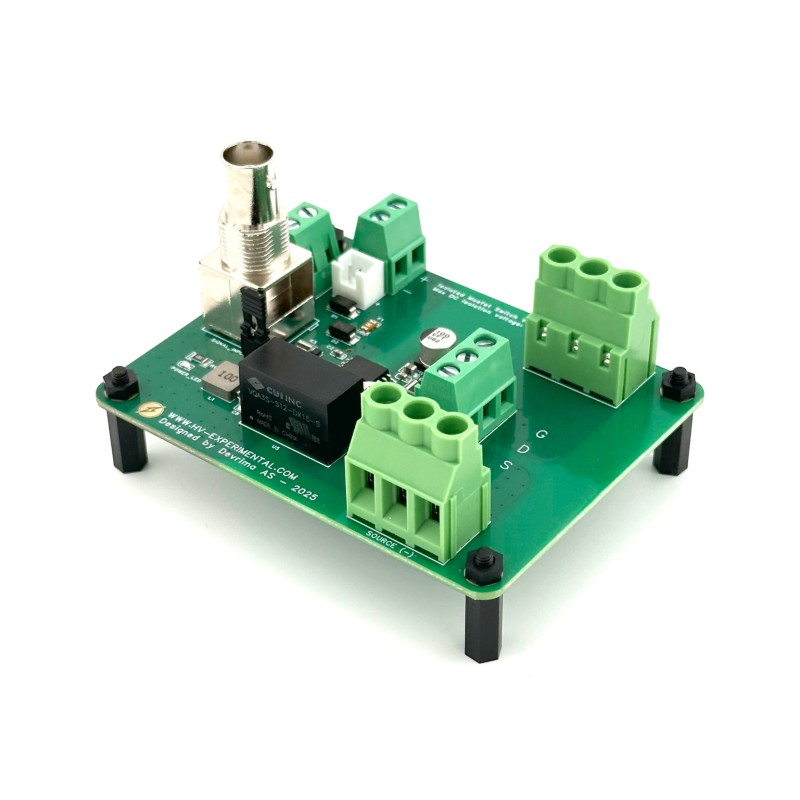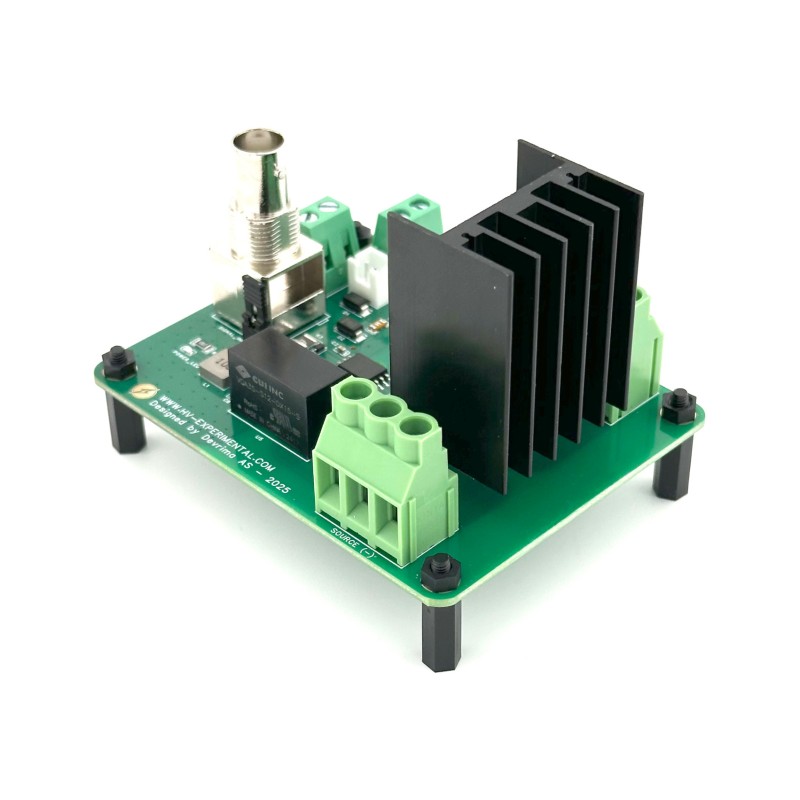 - Ultra-Fast Switching: Featuring a completely new gate driver and optimized low-inductance layout, the board achieves switching speeds below 10 ns (MOSFET- and load-dependent). This makes it ideal for generating extremely sharp impulses, especially when driving inductive loads.