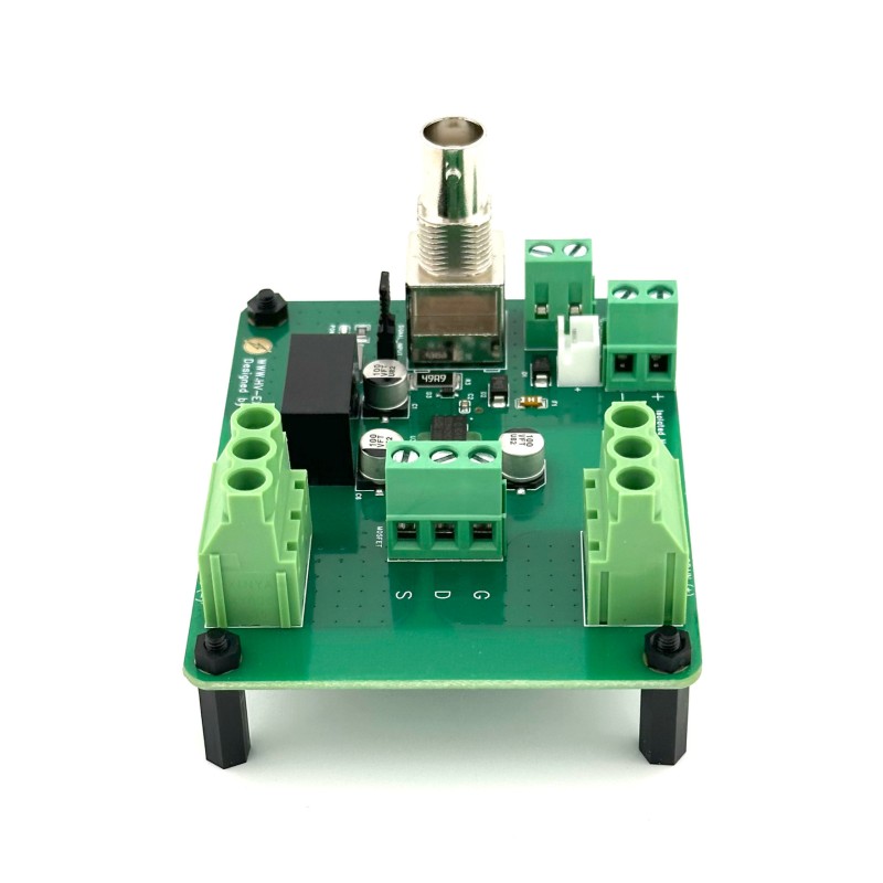 - MOSFET Flexibility: The onboard MOSFET can be easily replaced by the user, while the drain and source connections use heavy-duty screw terminals rated for high current and AWG 10 wire.