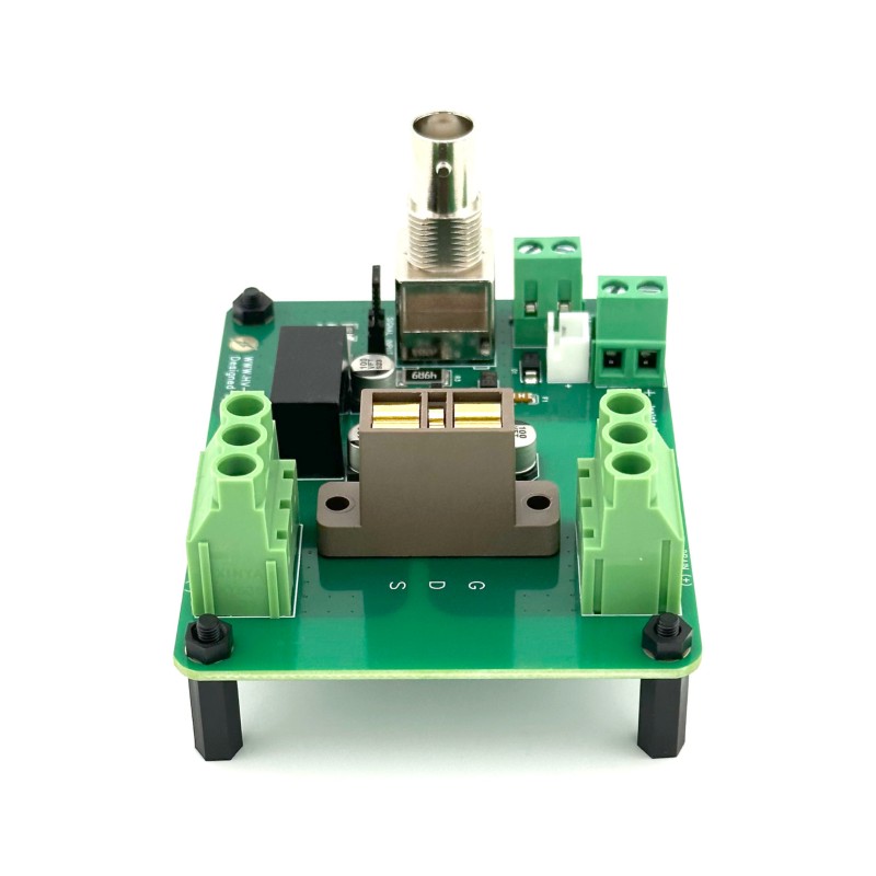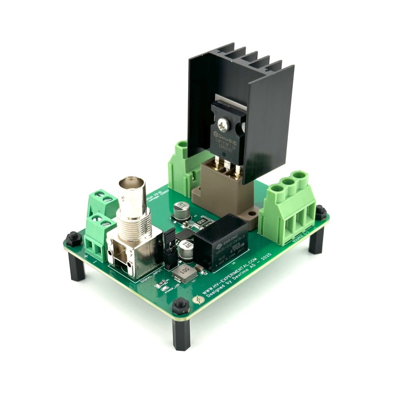- Ultra-Fast Switching: Featuring a completely new gate driver and optimized low-inductance layout, the board achieves switching speeds below 10 ns (MOSFET- and load-dependent). This makes it ideal for generating extremely sharp impulses, especially when driving inductive loads.