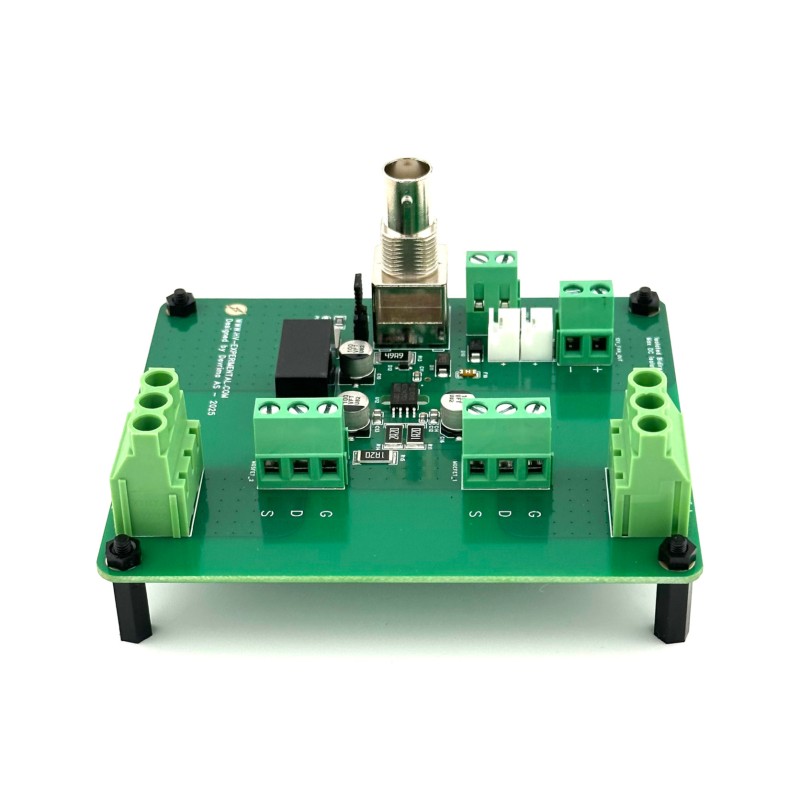 - Input Signal Compatibility: Designed for square-wave input signals in the 3.3 V to 5 V range (into 50 ohm when selected). Negative input voltages must be avoided to protect the gate driver.